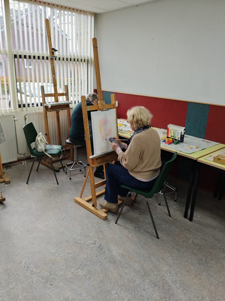 De sfeer is prima en men komt graag. De docente is Marie-Louise Saanen, alle technieken komen aan de beurt en via speciale opdrachten worden de leden extra uitgedaagd hun grenzen te verleggen. Er wordt gewerkt met Acrylverf, Olieverf, Pastelkrijt, Potlood en Houtskool.
