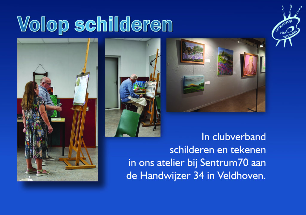 “Het Penseeltje” is een vereniging voor amateurschilders en -tekenaars in Veldhoven die op 31 januari 1983 is opgericht, dus we bestaan nu alweer ruim 43 jaar. We hebben als doel het stimuleren en activeren van creativiteit in meest ruime zin en er is plaats voor ieder niveau: van beginners tot gevorderden. De vereniging heeft ongeveer 100 leden en wordt gedragen door een groep ervaren vrijwilligers die de verschillende groepen begeleiden waar vrij wordt gewerkt. Zij staan de leden bij met raad en daad bij hun tekenen, schilderen of werken met andere technieken.